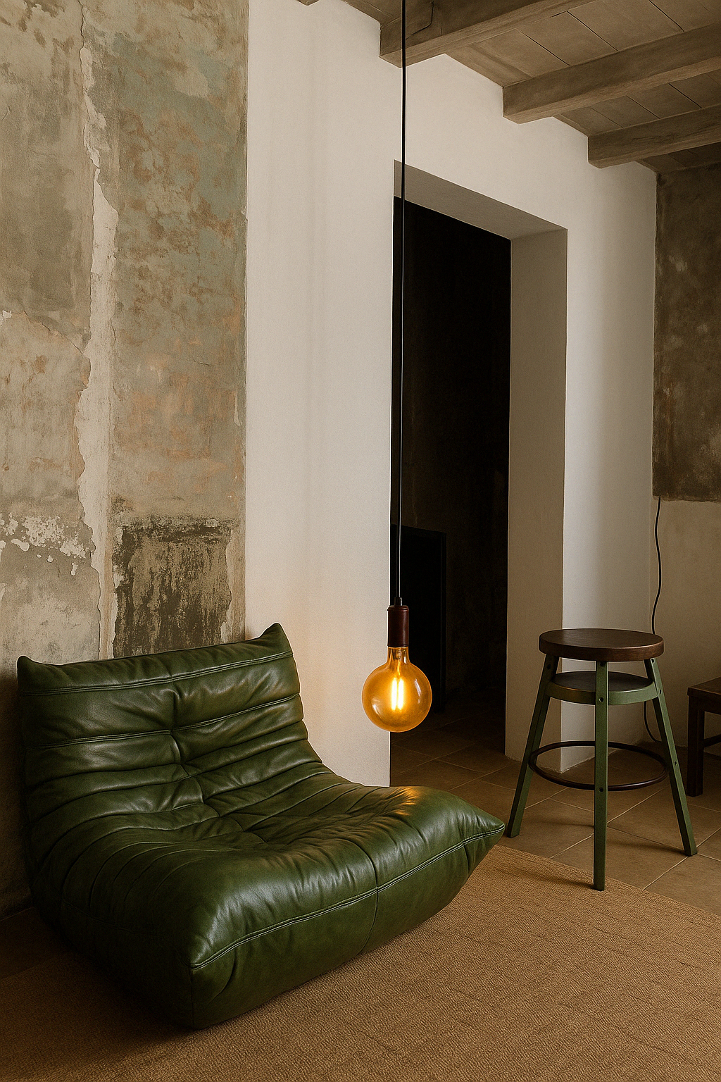 Crafted with high-density foam, the chair molds to your body for sink-in comfort that lasts all day. Whether you're styling a mid-century inspired living room, creative studio, or cozy corner, this Togo-style leather chair is designed to stand out.
